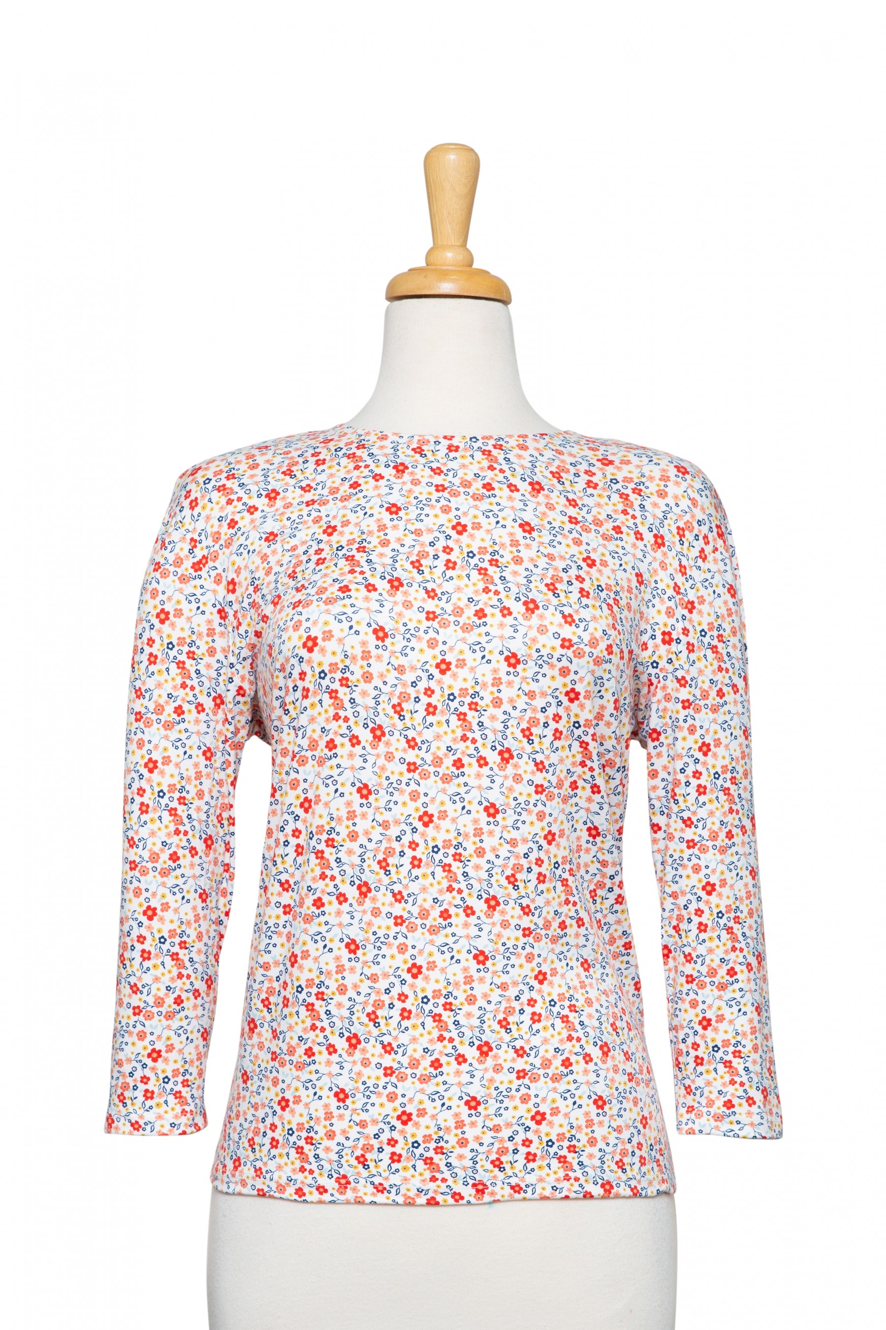 Poppy, Melon and White Mini Floral 3/4 Sleeve Cotton Top